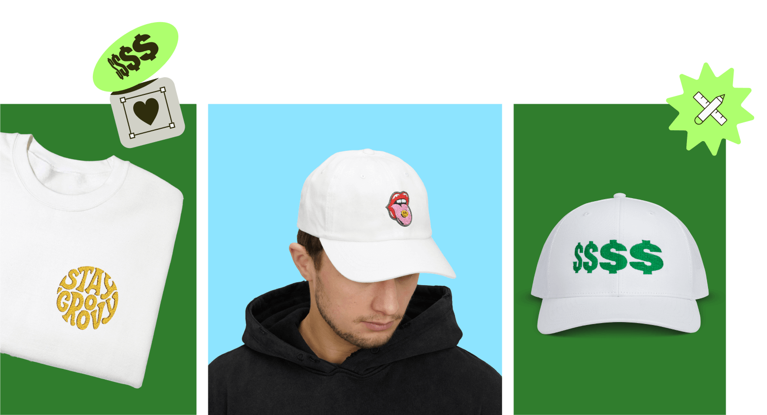 Upload a PNG (with a transparent background) or a JPEG file with a resolution of at least 1200 × 720 pixels (for hats) or 1200 × 1200 pixels (for other products) for the best results. - Keep your design simple